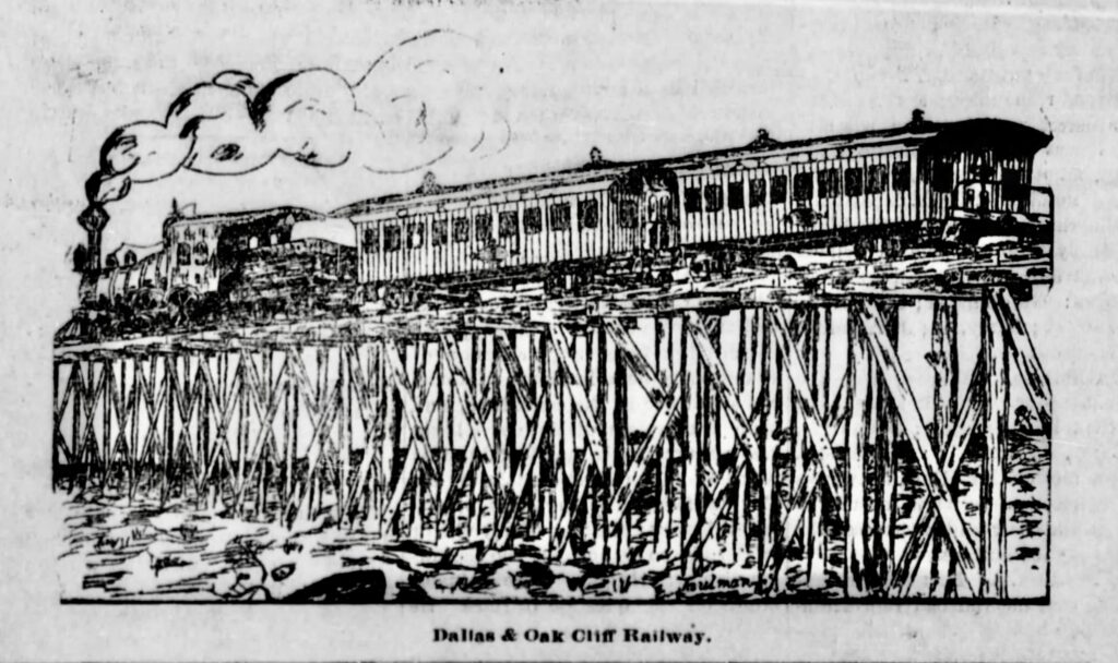 A few years earlier, interest had begun to rise regarding a means to connect the new town of Oak Cliff to Dallas via rail. Around that time, the Dallas and Oak Cliff Railway Company was founded by Thomas L. Marsalis and John S. Armstrong.